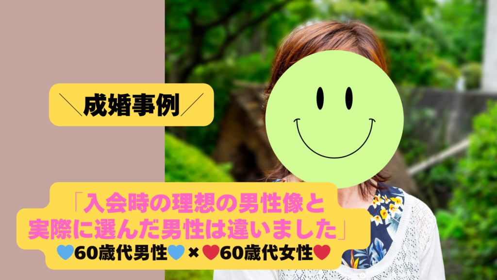 \成婚事例/「入会時の理想の男性像と実際に選んだ男性は違った」年を重ねてもう一度誰かと人生を歩みたいと願った女性|60歳代男性✖︎60歳代女性